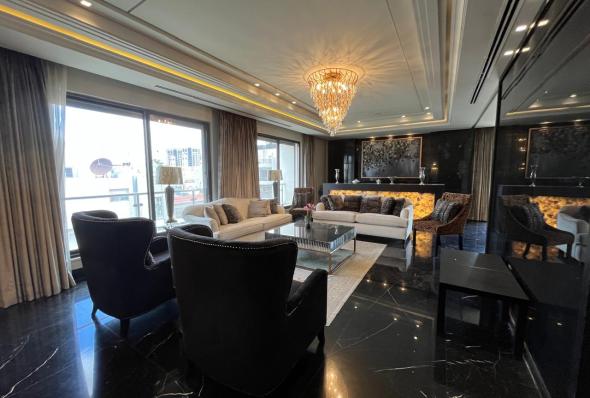 190 sqm modern furnished apartment 3 bedrooms (one bedroom) Salon and living rooms Modern Kitchen Underfloor gas heating Maid and laundry rooms Elevator and garage