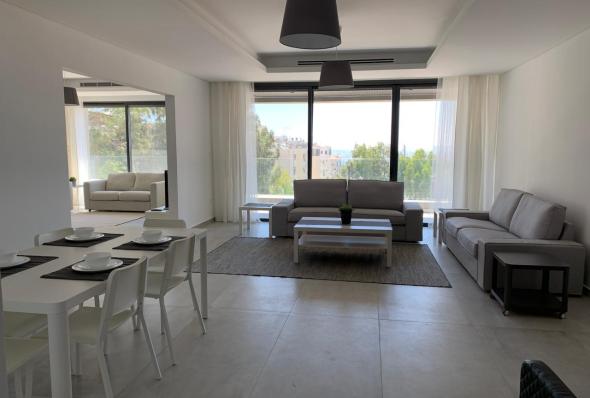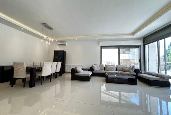 320 sqm modern furnished apartment Super deluxe finishing 4 bedrooms (2 masters) 4 bathrooms Salon with dining area Living room Modern kitchen with all appliances Water well Garages