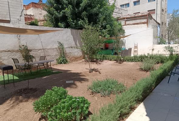 100 sqm ground floor apartment 100 sqm outdoor terraces and lovely garden 2 bedrooms ( 1 master ) 2 bathrooms Installed kitchen with all appliances Salon Balcony Fire place A garage