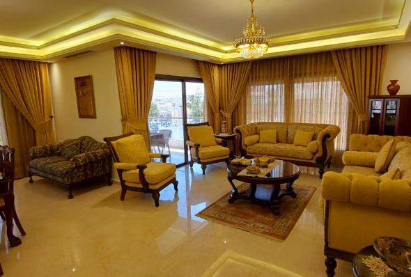 -280 sqm furnished apartment -Super deluxe finishing -4 bedrooms (2 masters) -Salon, living room -Installed kitchen with all application -2 balconies -Water well -Garage