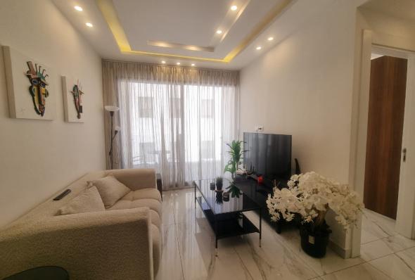 100 sqm Furnished Apartment Super deluxe finishing Two bedrooms (One master ) Two bathrooms Salon Installed kitchen with all appliances Central heating and cooling system Garage