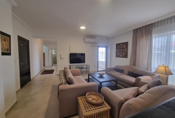 -185 sqm furnished apartment -Super deluxe finishing -3 bedrooms (1 master) -3 bathrooms -Two salons -Living room -Installed kitchen with all appliances -A/C Units -Garage
