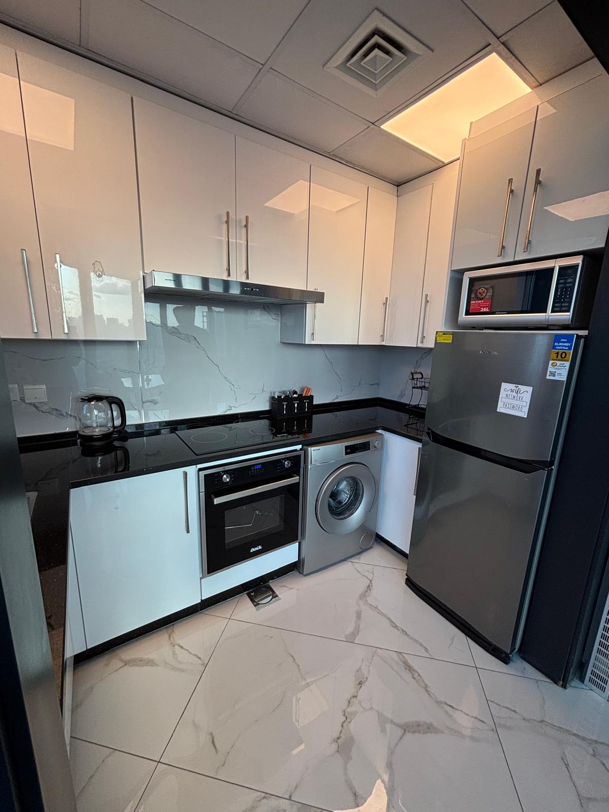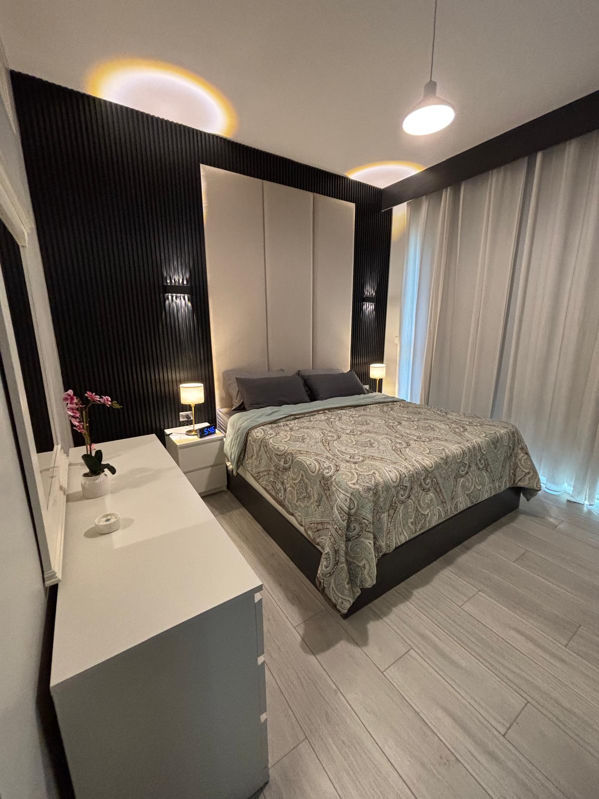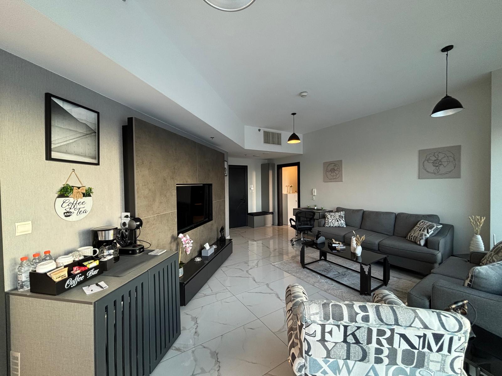 fully furnished 75 sqm one-bedroom apartment, plus a spacious balcony. Featuring modern design and high-quality furnishings, the unit includes a fully equipped kitchen and a stylish living area.