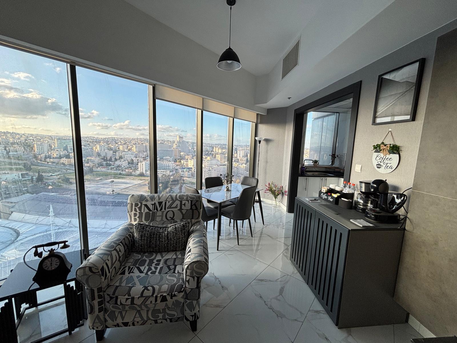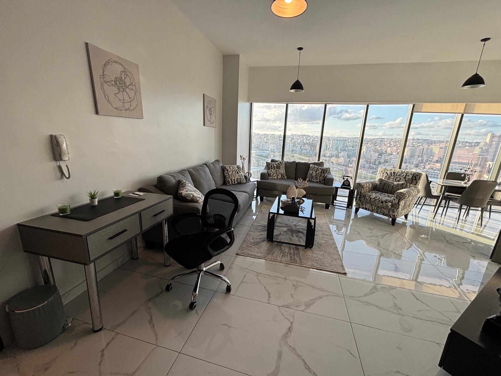 Luxury One-Bedroom Apartment for Lease – 18th floor of one of the first high-rise residential projects in Jordan, part of the city’s new Abdali master plan.